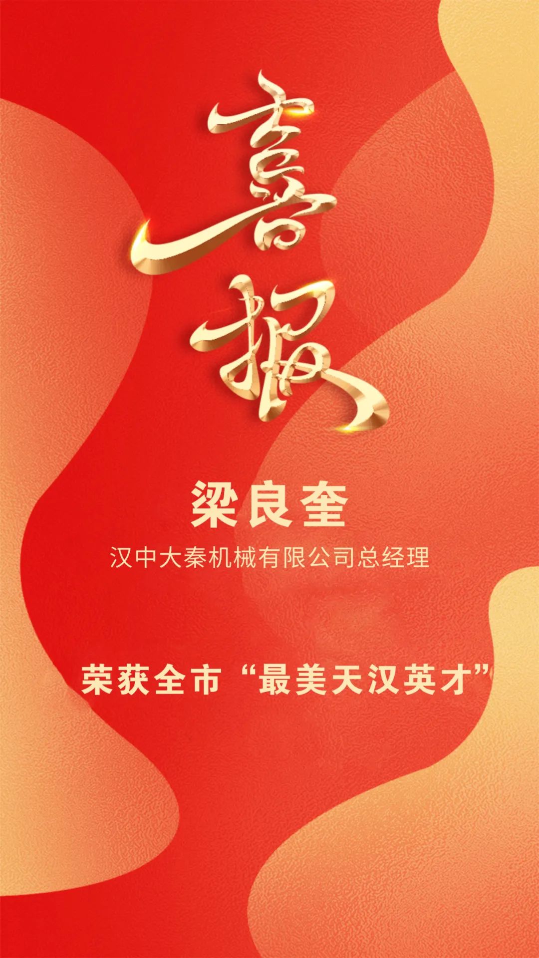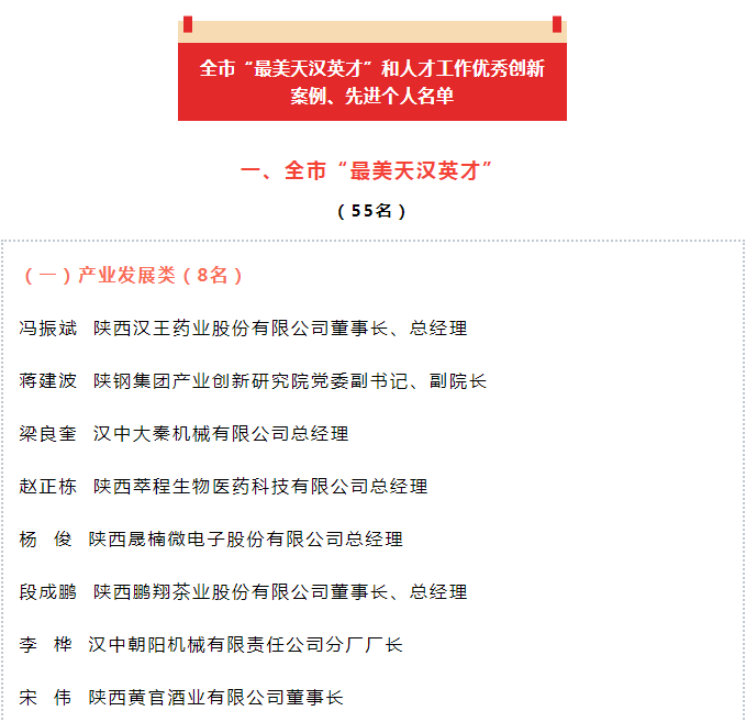 2月27日市委人才工作會議召開,全市55人被表彰為“最美天漢英才”、20人被表彰為全市人才工作先進(jìn)個(gè)人、10個(gè)全市優(yōu)秀人才創(chuàng)新案例獲表彰。漢中大秦機(jī)械有限公司總經(jīng)理梁良奎榮獲全市“最美天漢英才”